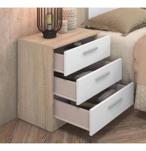Con medidas de 43,2 cm (ancho) x 43.5 cm (alto) x 33,5 cm (fondo) y una capacidad eficiente de los cajones, esta mesita es una pieza perfecta para cualquier dormitorio, ya sea juvenil o doble. 🛋️ Complemento Ideal para Tu Espacio 🛋️ Compuesta de 2 cajones, la mesita es ideal para organizar y guardar todo tipo de ropa y accesorios, adaptándose a cualquier estilo y decoración. Además, es combinable con el resto de la colección, permitiéndote crear un ambiente armonioso en tu dormitorio. 🌟 Detalles que Resaltan 🌟 En la parte frontal, dos tiradores centrales de 5,7 cm de ancho x 4,3 cm de alto en color aluminio aportan un toque moderno y práctico, facilitando la apertura de los cajones de forma elegante. 💪 Diseño Resistente y Atractivo 💪 La estructura resistente de aglomerado de alta resistencia, acabada en melamina de alta calidad con un perímetro roble claro y cajones blanco mate, asegura durabilidad y estética. Puedes elegir entre 4 combinaciones de colores para personalizar tu espacio: Blanco con vetas / gris Roble / gris Blanco con vetas / roble Roble / blanco con vetas Fácil de Limpiar y Mantener El material no poroso y muy resistente de la mesita hace que sea fácil y rápido de limpiar con un simple paño húmedo, manteniendo su aspecto impecable a lo largo del tiempo.